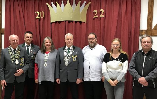 Es gibt einen neuen König! Inthronisation beim Sportschützenverein Bammental ! Am Samstag, 12. November anno 2022 war es endlich wieder so weit: Nach der coronabedingten Verlängerung ihrer Amtszeiten durften die bisherigen Hoheiten die Bürde ihrer Herrschaft an ihre Nachfolger übergeben. Doch anders als heutzutage bei „normalen“ Königinnen und Königen, musste beim Sportschützenverein um die Nachfolge gekämpft werden. Und selbstverständlich durfte bei diesem Wettkampf scharf geschossen werden– mit Bogen und Gewehr. Wer den Kampf um den Thron wollt‘ gewinnen, brauchte nicht nur eine ruhige Hand, sondern auch eine gehörige Portion Glück, denn Ziel war diesmal eine „Glücksscheibe“, auf der Plus- und Minuspunkte in buntem Reigen verteilt waren. Um Augen, Mut und Stimmung zu stärken, wartete der Oberschützenmeister persönlich zu Beginn des bedeutungsvollen Abends mit einem Willkommenstrunk aus erlesen perlenden Schaumwein auf. Ein Kampf, bei dem Rang und Ehre auf dem Spiel stehen, kostet Kraft und Energie, weshalb auch ein reichhaltiges Buffet errichtet ward, an dem Streiter und Streiterinnen sich laben konnten, dankeswerterweise umsorgt von den emsigen Helferlein des Volkschors, die auch als Mundschenk sich fleißig um die Befeuchtung der trockenen Kehlen kümmerten. Als die Spannung um den Ausgang des Kampfes kaum noch zu steigern war, schritt endlich der wackere Oberschützenmeister Pierre Schwuchow zur Tat, flankiert vom grimmig schmunzelnden Schützenmeister Florian Sittig. Doch ein Magister des Bühnenspektakels weiß um die Macht des Hinhaltens, der gekonnten Verzögerung, aus der sich jede Spannung noch weiter steigern lässt. So wurde denn zunächst der Hofstaat geehrt: Als treuer Recke in den Reihen der Schützen wurde Achim Müller für 50 Jahre Gefolgschaft mit den Ehrennadeln in Gold von Schützenkreis, Landesverband und dem deutschen Schützenbund geehrt. Gewürdigt wurde auch Hans Joachim Paschen für seine trefflichen Verdienste als langjähriger Oberschützenmeister mit dem „kleinen Greif in Silber“ vom BSV und die „bronzene Ehrennadel“ vom Schützenkreis 4. Doch damit nicht genug: Selbiger Hans Joachim Paschen, durch Erfahrung vieler Schützenjahre wohlgereift, zeigte den Jüngeren, was wahre Schützenkönnerschaft bedeutet: Mit dem, im Vergleich zur Landesmeisterschaft, besten Ergebnis mit der Luftpistole wurde er zum diesjährigen Vereinsmeister ernannt. Neben Rufen freudiger Überraschung waren anerkennendes Gemurmel und ehrfürchtiges Geraune aus den Tiefen des Volkes zu vernehmen. Doch jetzt trat der alte König vor: Zum Gedenken an seine lange Herrschaft präsentierte Erik Werner die von ihm selbst gestaltete Königsscheibe: Ein Kunstwerk voll funkelnder Leuchtdioden, die den drei Disziplinen des Schießsports Tribut zollten: Dem Bogensport, dem Pistolen- und dem Gewehrschießen. Nunmehr ward es aber an der Zeit, die obersten Würden zu vergeben. Erst kam die Reihe, wie seit jeher Brauch, an den Altersschützenkönig.